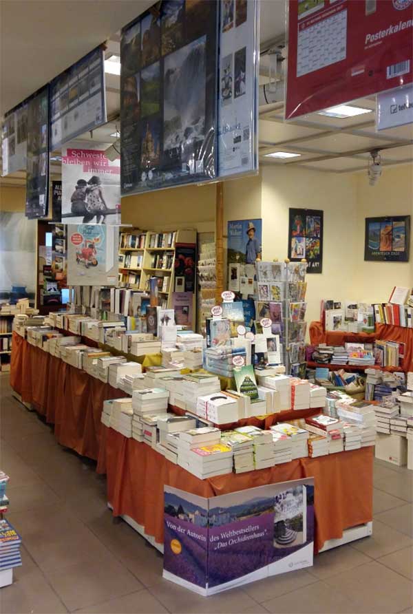 Der freundliche und helle Laden lädt zum Stöbern ein, und sicher werden Sie von der großen Auswahl an Immer aktueller Belletristik und der wunderbar sortierten Kinder und Jugendliteratur begeistert sein. Auch für die Kleinen gibt es genügend Platz, um mit viel Zelt und Spaß in den Regalen fündig zu werden. Die liebevoll gestaltete Sitzecke wartet auf Sie und lässt Sie in aller Ruhe schmökern.